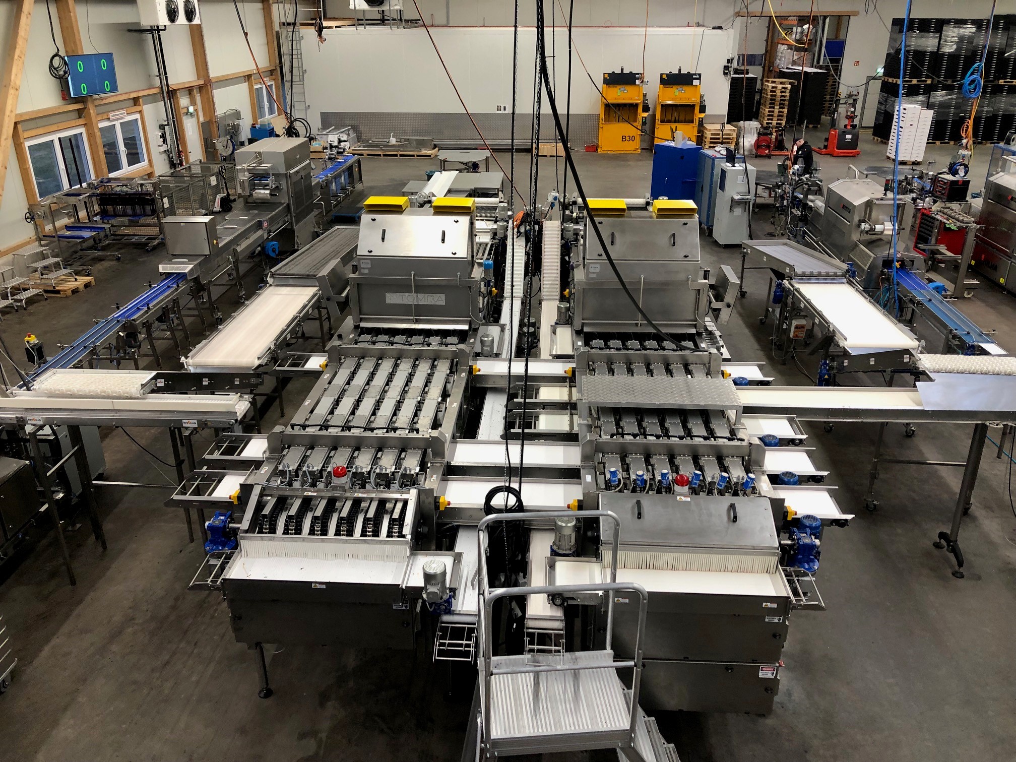 Täglich werden rund 60 Tonnen Heidelbeeren durch die Sortieranlage des Betriebs geschleust. Die Reinigung und Wartung dieser Anlage erfolgte bisher unter erschwerten Bedingungen: Mit Leitern und improvisierten Mitteln - eine potenzielle Gefahrenquelle für das Personal. Auf Initiative des Kunden wurde gemeinsam eine stationäre Wartungsbühne entwickelt, die die komplette Sortieranlage sicher zugänglich macht. Ziel war es, die Arbeitsbedingungen grundlegend zu verbessern und ein sicheres Arbeiten in allen Bereichen der Anlage zu ermöglichen – von der Überwachung über die Wartung bis zur Reinigung.