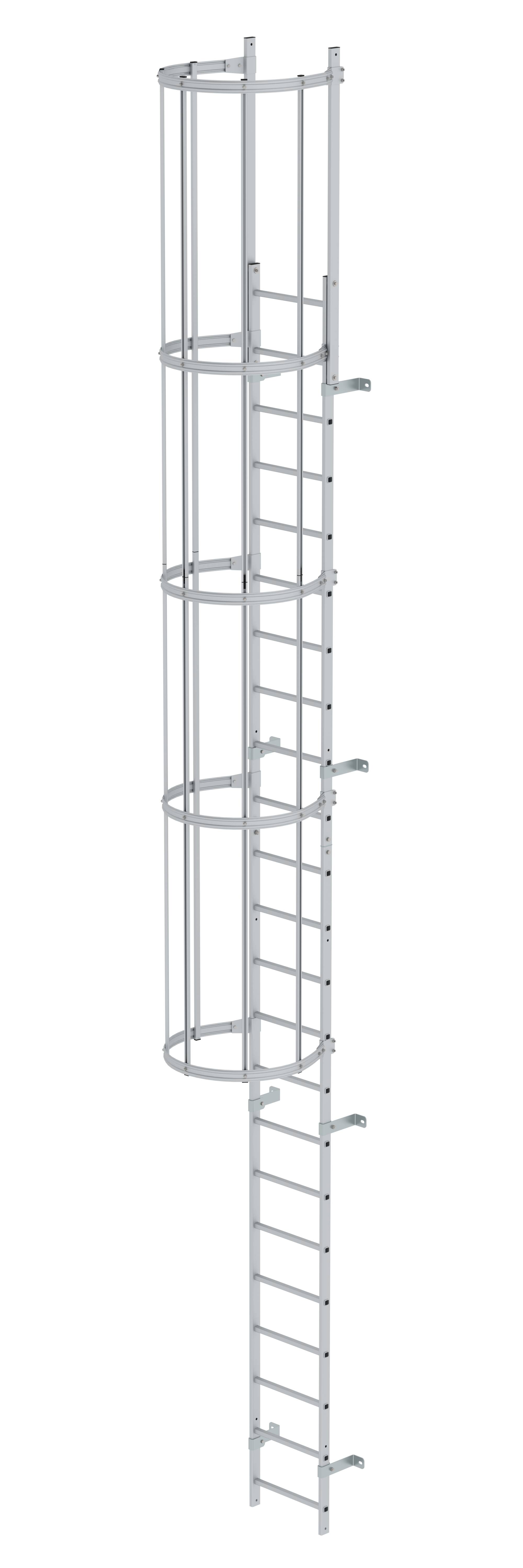 Einzügige Steigleiter mit Rückenschutz Alu eloxiert