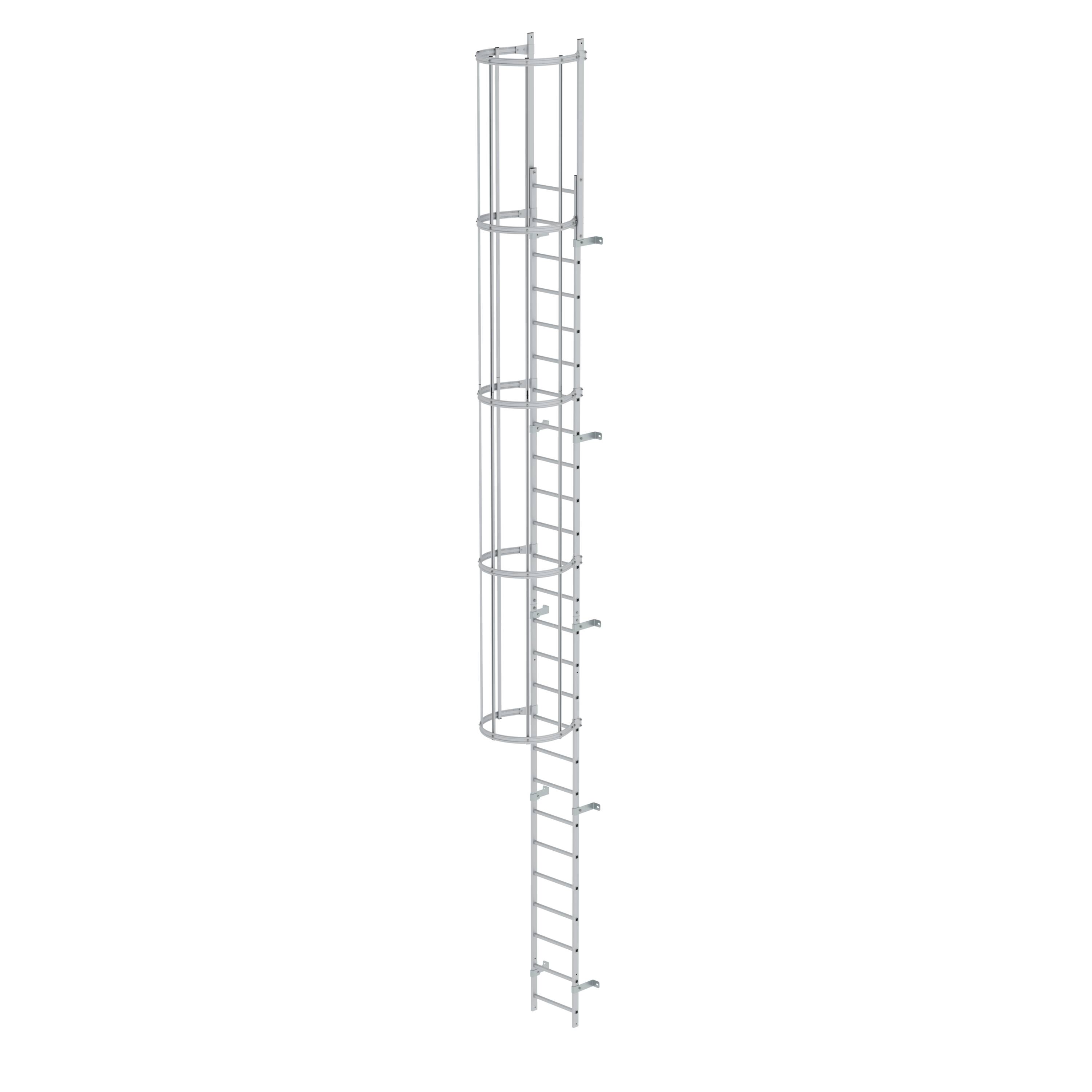 Einzügige Steigleiter mit Rückenschutz Alu eloxiert