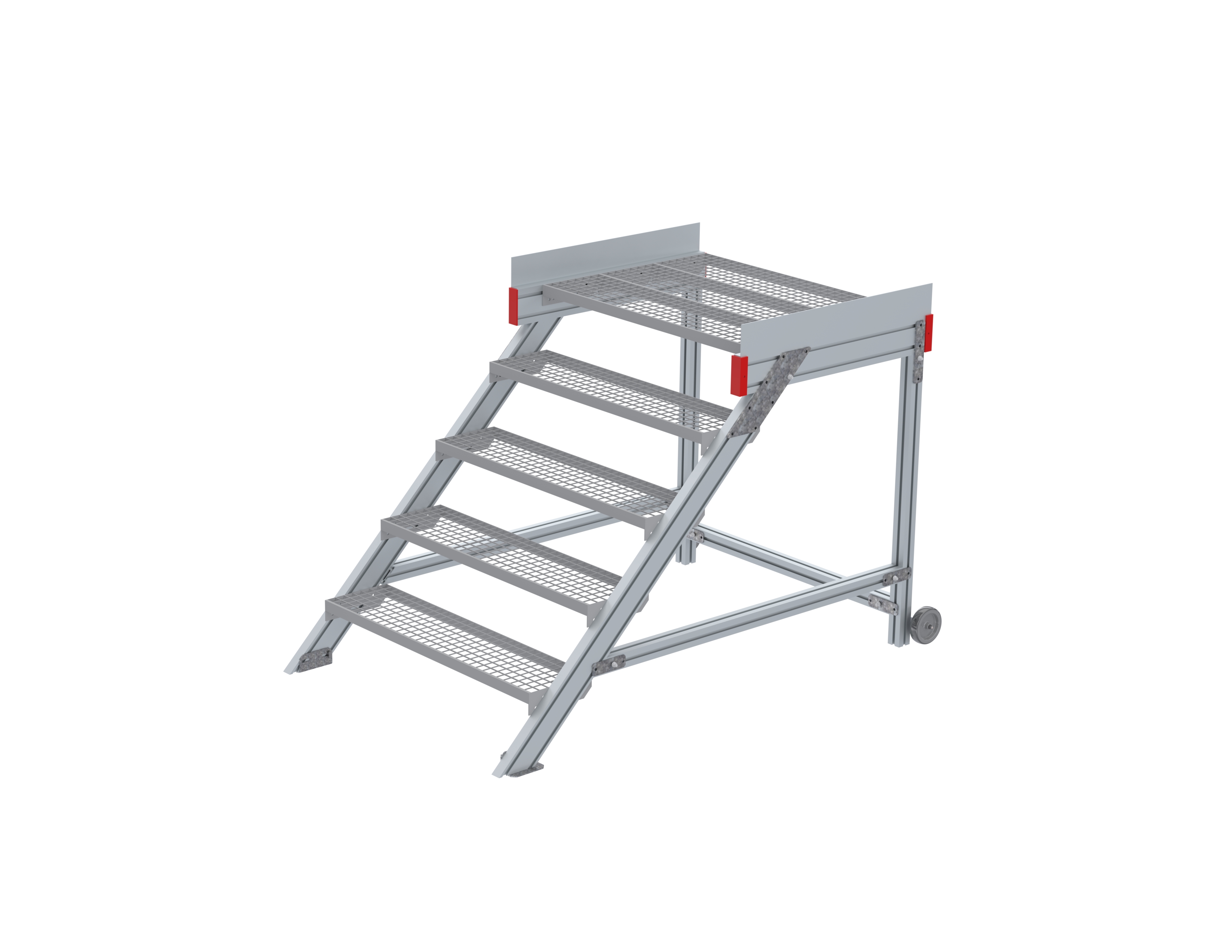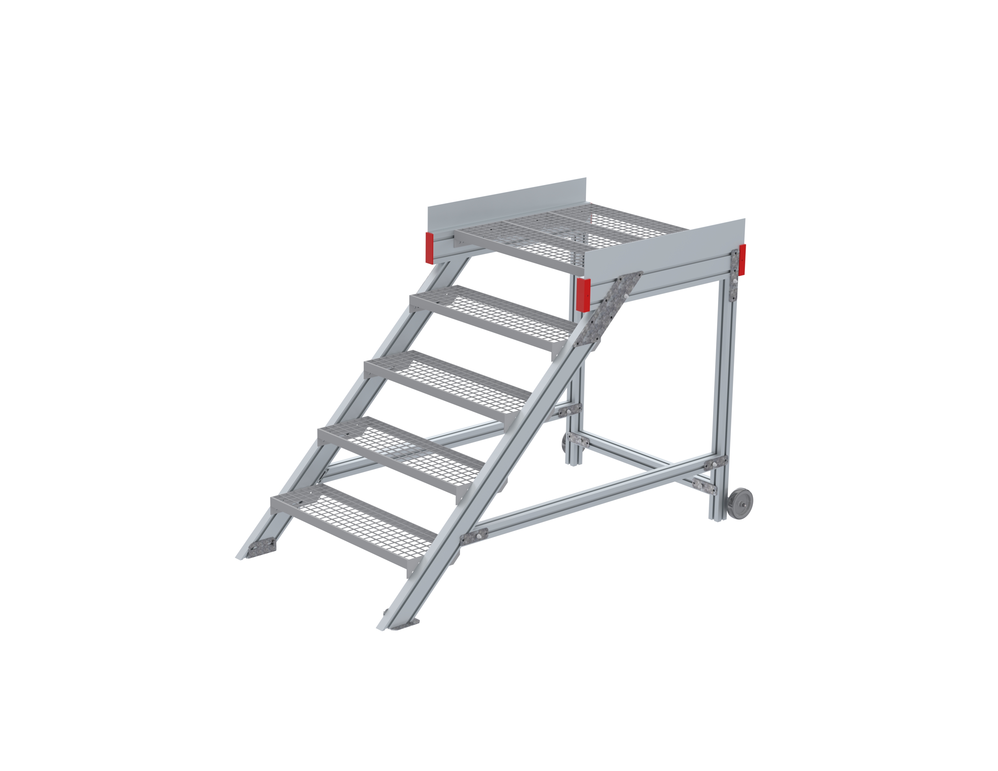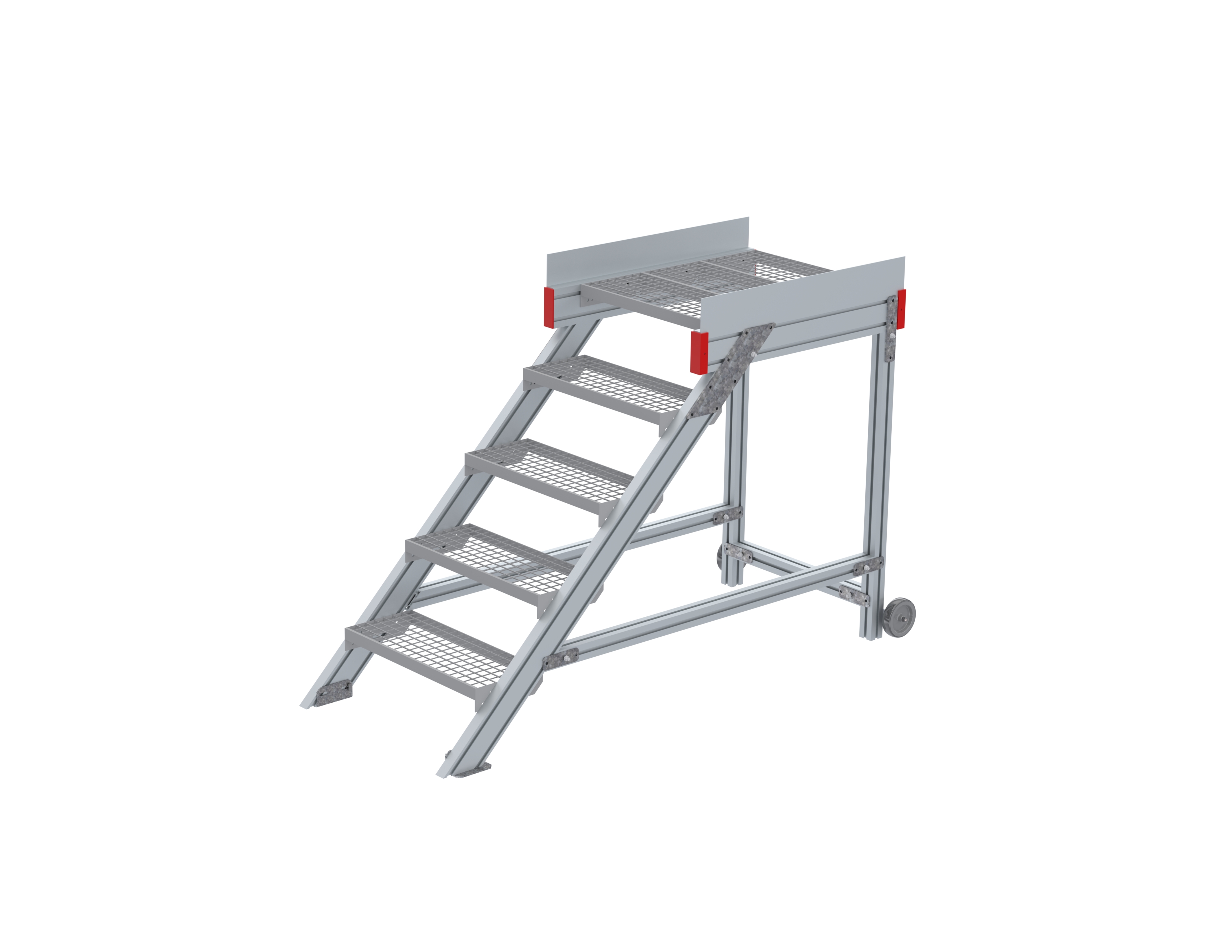 - Ab einer Steighöhe von 500mm sowie einem Luftspalt > 200mm, zwischen Konstruktion und bauseitigem Objekt, ist gemäß DIN EN ISO 14122 an der entsprechenden Seite ein Geländer einzusetzen
