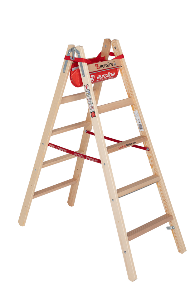 Mit der breiteren Standfläche ermöglichen diese Holz-Stehleitern auch bei längeren Arbeiten einen ermüdungsfreien Stand - die oberen beiden Sprossen dürfen nicht betreten werden; sie dienen zur Stabilisierung des Standes Comfort-Breitsprosse