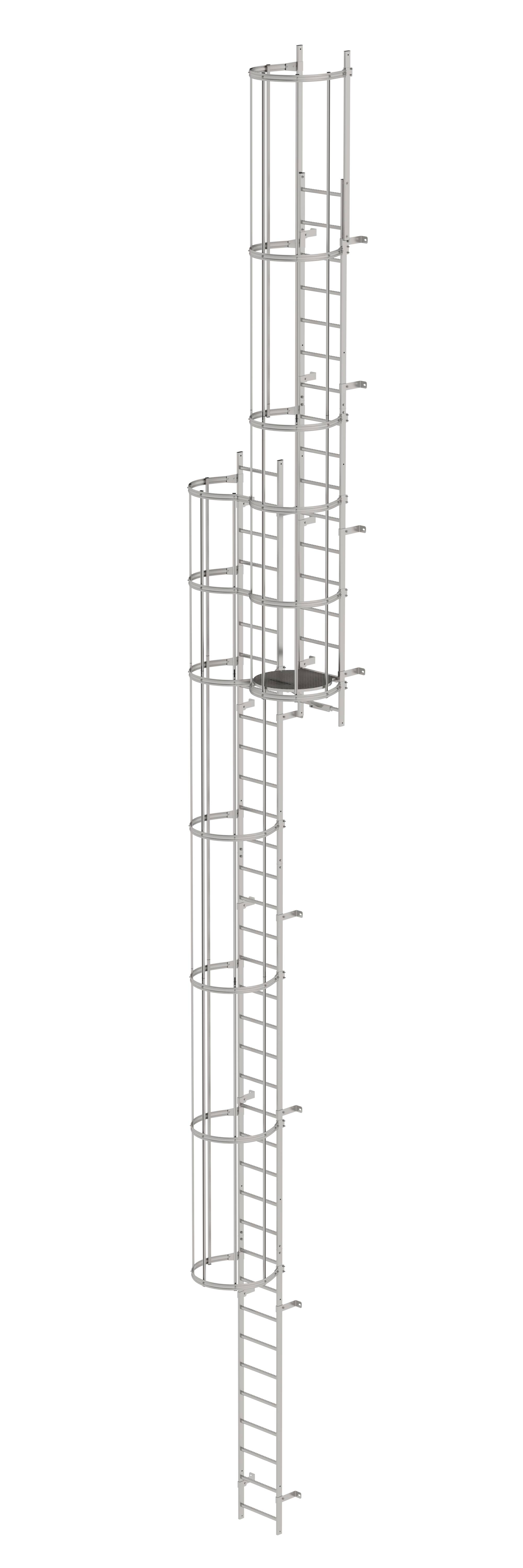 Mehrzügige Steigleiter mit Rückenschutz Edelstahl (1.4571)